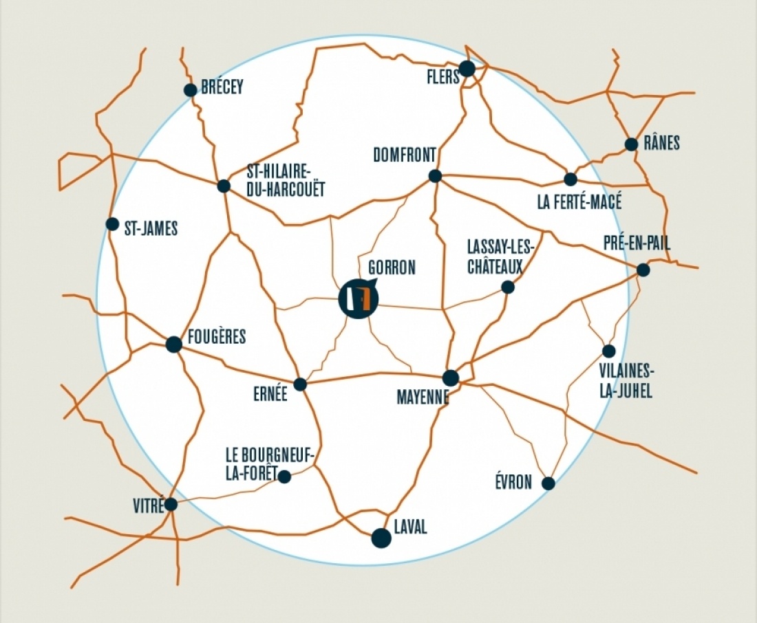 Nous intervenons dans un rayon de 50km autour de Gorron, ce qui comprend les villes de :